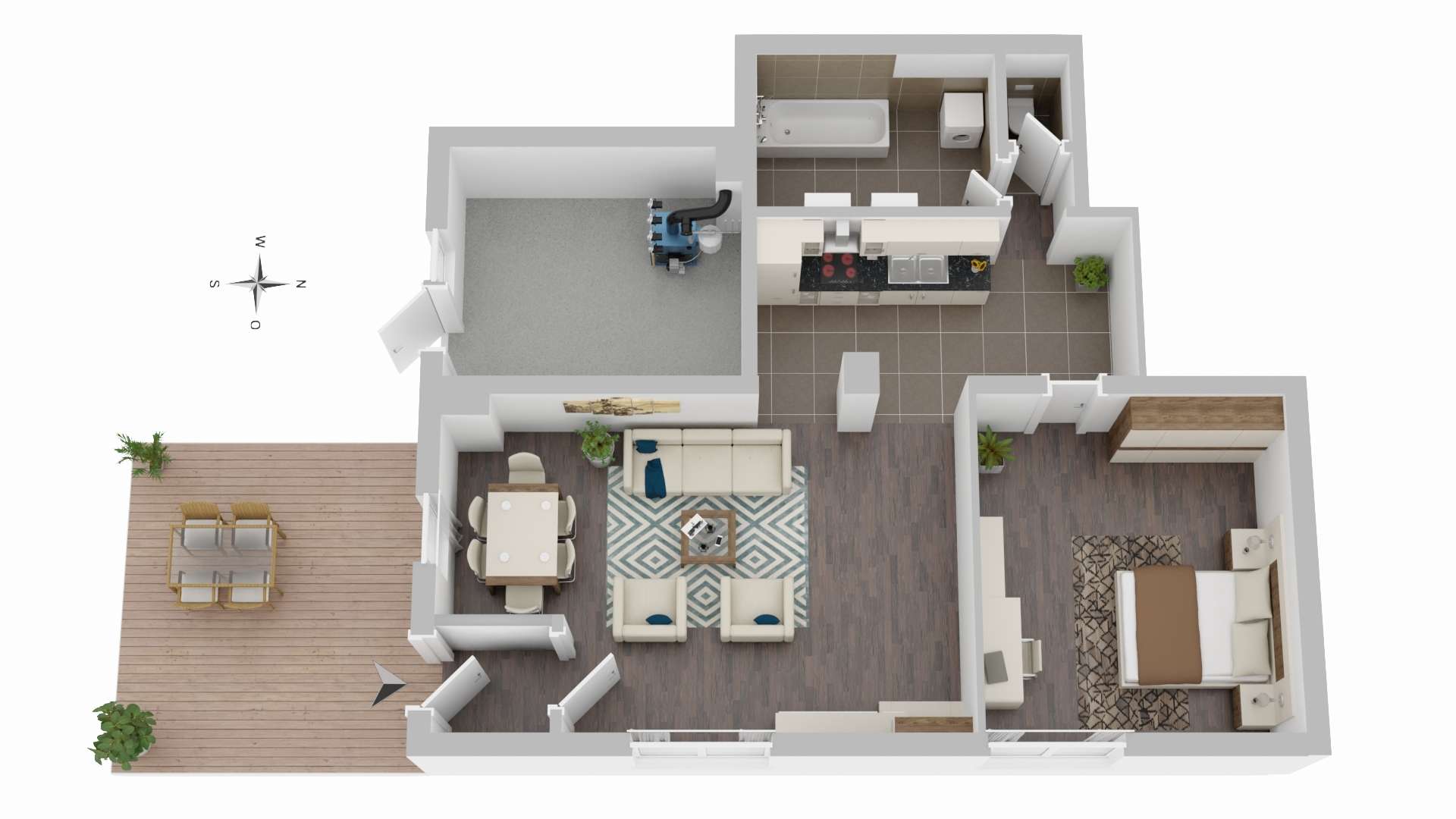 Die Ausstattung ist einfach, aber funktional, was eine ideale Basis für individuelle Gestaltungsmöglichkeiten bietet. Ein praktischer Kellerraum gehört ebenfalls zum Angebot und bietet zusätzlichen Stauraum.