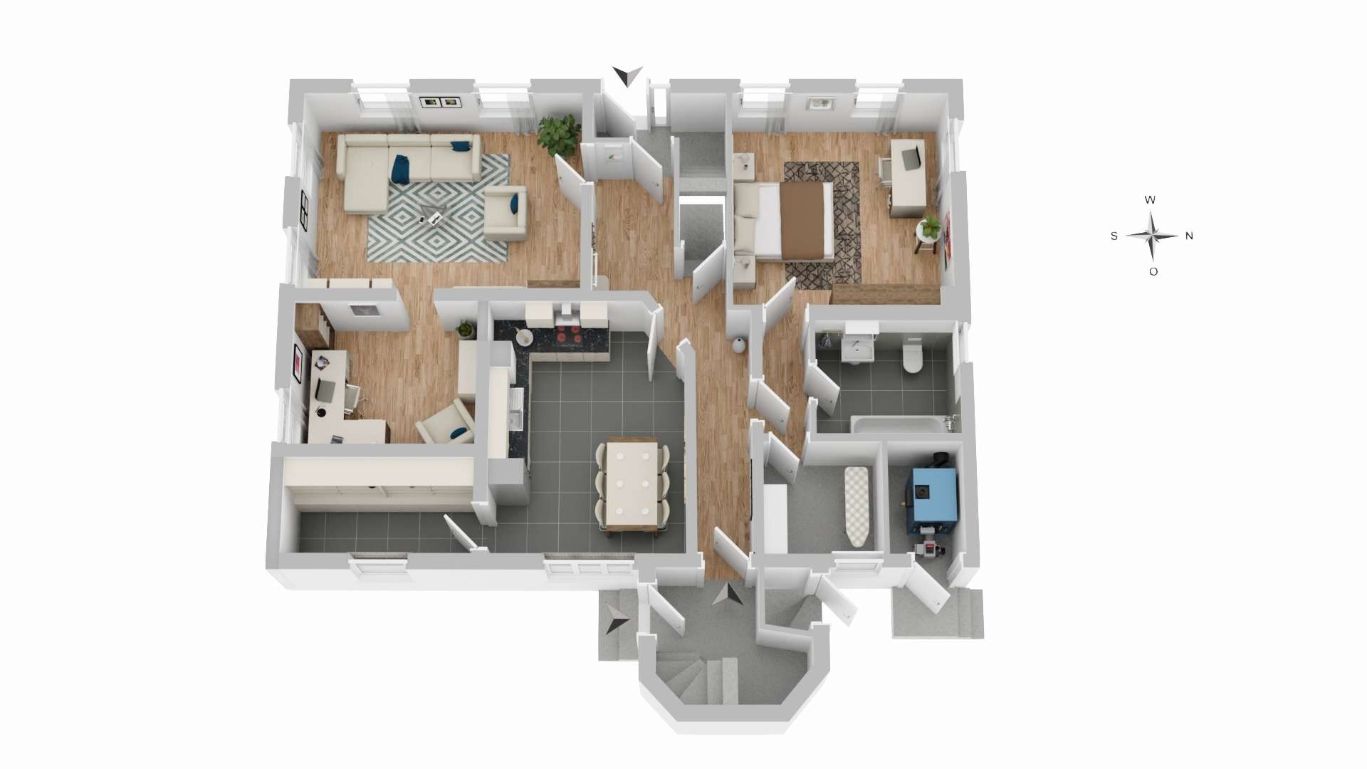 Das Haus erstreckt sich über drei Etagen und beherbergt drei separate Wohnungen, die alle perfekt für Familienleben geeignet sind. Mit insgesamt vier Bädern bietet das Haus Komfort und Privatsphäre für alle Bewohner.