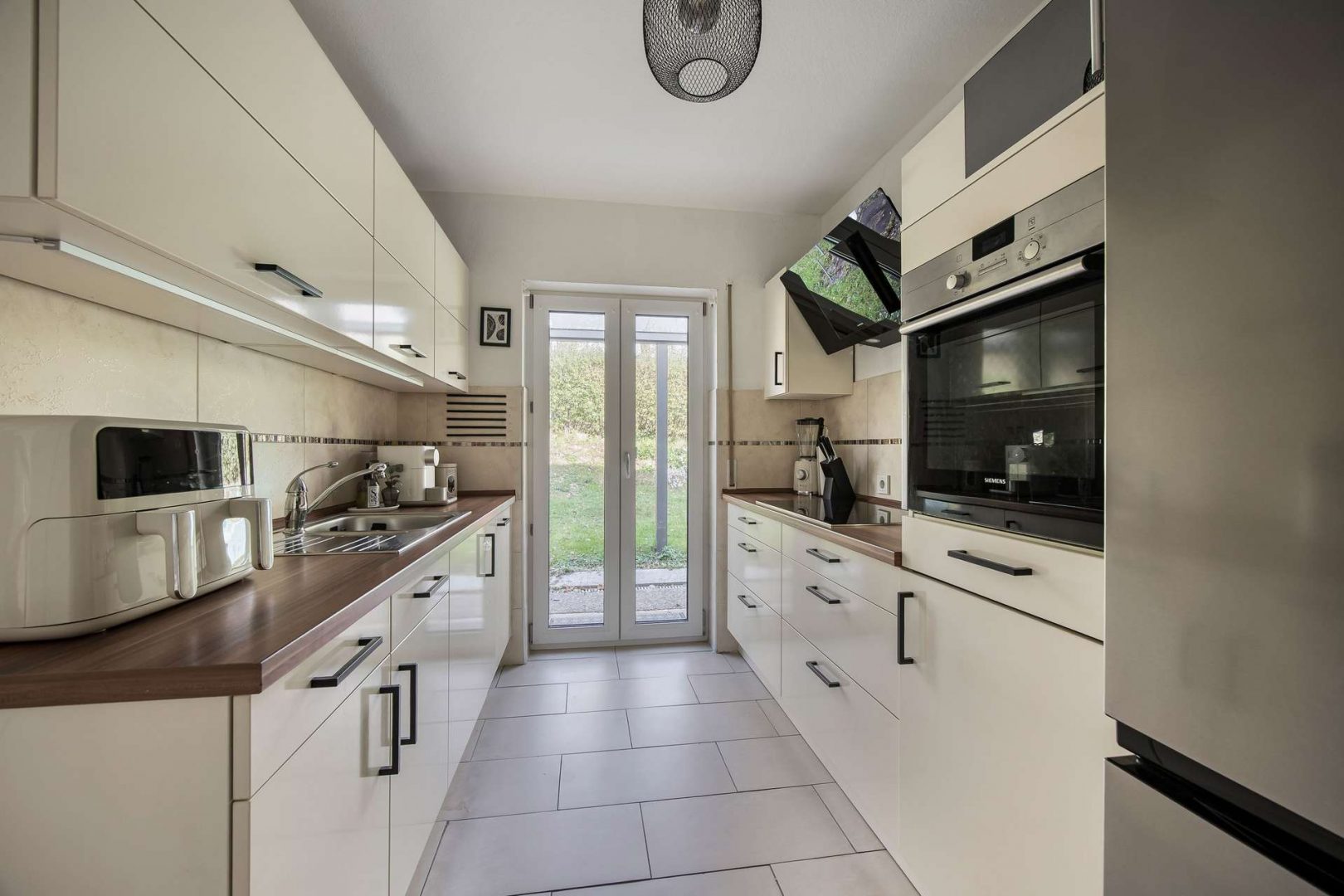 Zu den weiteren Highlights gehören eine praktische Doppelgarage, zwei Terrassen und ein runderneuerter Balkon (2015). Die Erdgeschosswohnung verfügt über eine voll ausgestattete Einbauküche von 2024, die im Kaufpreis enthalten ist.