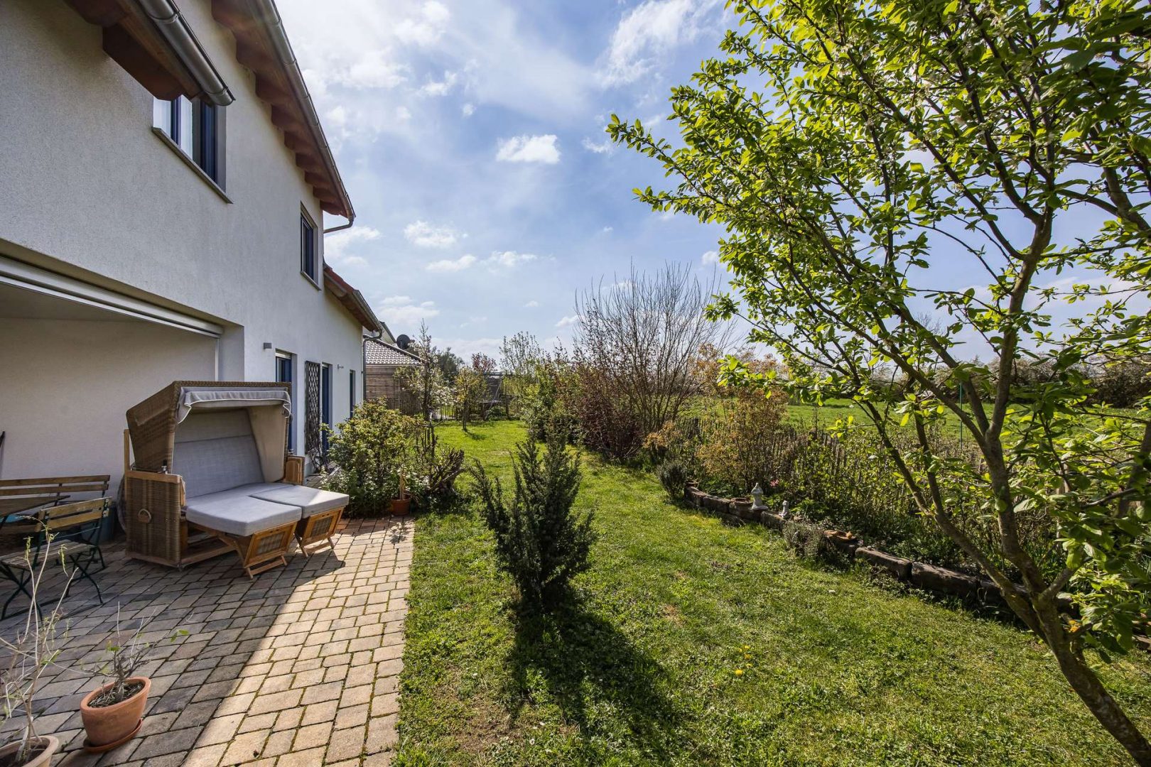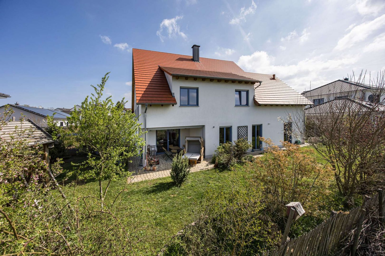 Das Haus steht auf einem 748 m² großen Grundstück mit einem gepflegten Garten, der viel Raum für Freizeitgestaltung, gesellige Stunden im Freien oder einfach zum Entspannen bietet. Besonders hervorzuheben ist die herrliche Fernsicht, die das Grundstück zu einem außergewöhnlichen Fleckchen Erde macht.